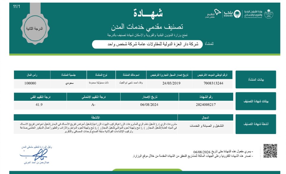 تعد شركة دار العزة كيانا طموحا يعمل وفق رؤية واضحة تقوم على الجودة والابتكار، حيث تسعى إلى تقديم حلول ومنتجات متكاملة تلبي احتياجات السوق وفق أعلى المعايير المهنية.